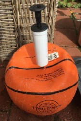 Maak de bal leeg door het ventiel in de bal te plaatsen en voorzichtig op de bal te drukken. Zorg ervoor dat het ventiel niet in de bal blijft zitten, anders loopt de bal weer vol.