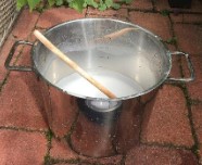 Haal de pomp uit het water en prik deze in één vloeiende beweging in de bal. Druk de pomp langzaam leeg. Herhaal stap 3 tot en met 6. Vul de pomp steeds opnieuw met zout en druk deze leeg in de bal. Laat af en toe wat lucht uit de bal lopen, want bij het pompen komt er ook wat lucht in de bal.